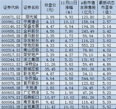 中南建設(shè)、榮盛發(fā)展、金科股份、迪馬股份、華發(fā)股份、綠地控股等個(gè)股最新動(dòng)態(tài)市盈率均在4倍以下。